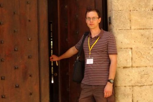 Artem Kabanov, a DECTRIS-sponsored participant in this year's School, discusses top crystallography on the top of a ...